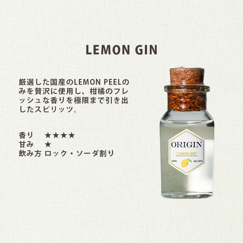 ORIGIN「PLUM GIN」「FLOWER GIN」「WHITE GIN」「LEMON GIN」各55ml